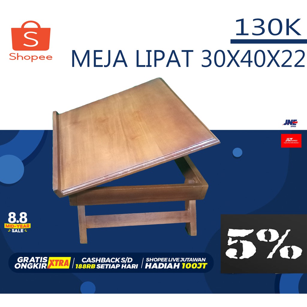 Meja lipat belajar anak murah kayu mahoni Shopee Indonesia . Sumber Gambar : shopee.co.id