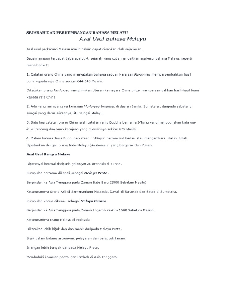 05 02 2022 · Nota ringkas bahasa melayu tingkatan 6 stpm penggal 1 2 3 1 1 PENGGAL 1 1 SEJARAH DAN PERKEMBANGAN BAHASA MELAYU 1 1 Asal Usul Bahasa Melayu 1 1 1 Konsep Melayu Definisi Melayu Bangsa Dikaitkan dengan istilah kawasan kerajaan dan antara bukti sejarah a M Ptolemy memanfaatkan istilah maleu kolon dalam Geographike Sintaxis sekitar 100 150M